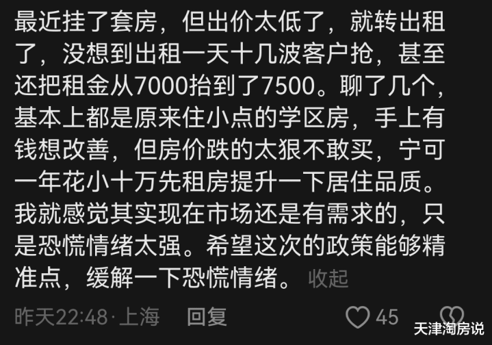 天津很多老破小的租金回报率能到3%,这就算不错了,但也仅与房贷利率持平,还无法撬动增量。