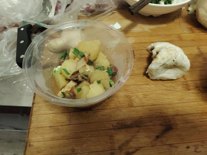 中午吃了打卤面,也只吃了半碗,晚上吃了半碗烩菜,吃了一个大点的肉包子。