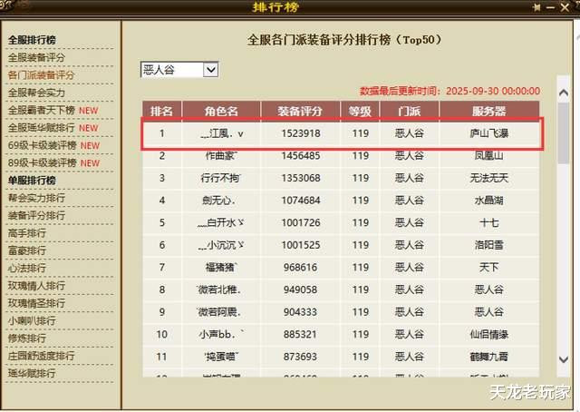 各位老铁,今天给大家介绍的,是来自【庐山飞瀑】的三进阶恶人谷大佬江风——同时也是全服第一恶人谷的最新面板: