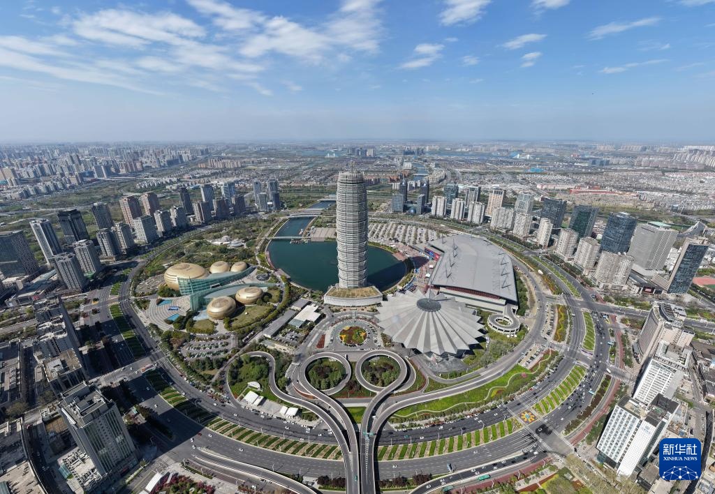 这是3月28日拍摄的河南省郑州市郑东新区中央商务区(无人机照片)。新华社记者 李嘉南 摄