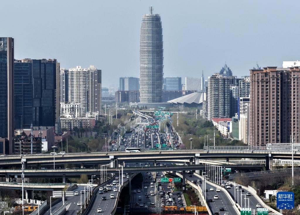 这是3月28日拍摄的河南省郑州市中州大道(无人机照片)。新华社记者 李嘉南 摄